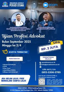 KASIHHATILAW.COM|JAKARTA-Kesempatan emas bagi Sarjana Hukum dan mahasiswa hukum yang ingin terjun ke dunia advokat atau pengacara. Organisasi Advokat Peradi Utama akan menyelenggarakan Pendidikan Khusus Profesi Advokat (PKPA) dan Ujian Profesi Advokat (UPA) di bulan Agustus 2025